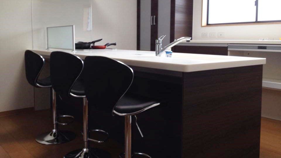 カウンターチェアを設置しました。奥さまのお料理の様子を微笑みながら見つめるご主人が目に浮かびます。