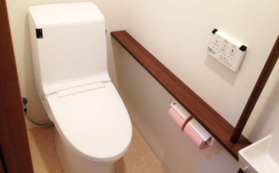 コンパクトな手洗いに、カウンターと手摺り。過ごしやすいトイレになりました。