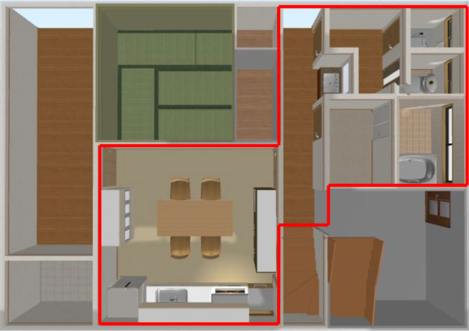 <BEFORE>(赤線内がリフォーム箇所になります)