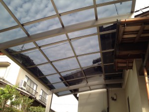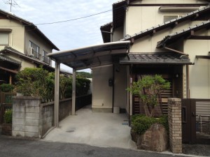 カーポートの高さが玄関の庇屋根と上の屋根の丁度間に納まるよう、